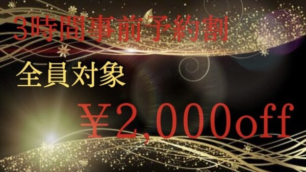 [12/22 17:05]✨3時間以上前✨ にご予約をいただいたお客様方限定!! 当イベントは皆様が対象となります。 《オールコース》 ♥️♥️¥2,000off♥️♥️ 是非1度ご利用下さい!